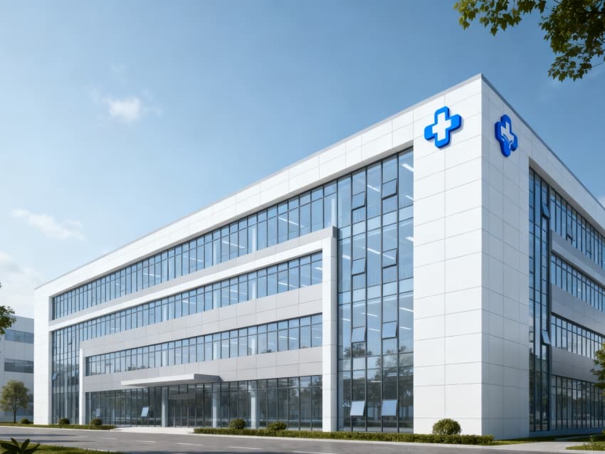 廠房外立面采用淺灰啞光潔凈涂料為主材,搭配雙層中空防紫外線玻璃,縱向線條規(guī)整簡(jiǎn)潔,主入口處嵌入簡(jiǎn)約的十字醫(yī)藥標(biāo)識(shí),弱化工業(yè)感的同時(shí)強(qiáng)化行業(yè)屬性;大面積玻璃幕墻引入柔和自然光,減少室內(nèi)人工照明能耗,整體呈現(xiàn)嚴(yán)謹(jǐn)、純凈的視覺(jué)質(zhì)感,契合醫(yī)藥研發(fā)的專(zhuān)業(yè)氛圍。?