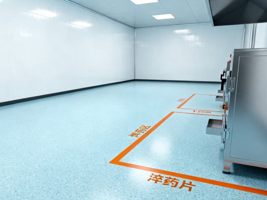 車間整體遵循醫(yī)藥級潔凈設計標準,地面采用淺藍色抗菌防滑環(huán)氧地坪,通過無縫一體化施工工藝,徹底消除藥渣殘留隱患與衛(wèi)生死角,其卓越的耐腐蝕性與易清潔特性,能夠從容應對中藥清洗、切制等高頻清潔作業(yè);四周白色防塵抗菌墻面經過特殊工藝處理,具備優(yōu)異的光線漫反射性能,搭配頂部科學布局的柔和照明系統(tǒng),既保證操作人員能夠清晰觀察藥材炮制過程中的性狀變化,又為生產環(huán)境構筑起一道潔凈無菌的安全屏障。