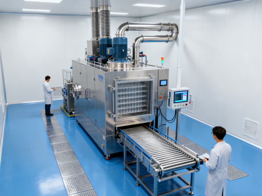 核心生產車間參數差異化設計:原料處理車間為10萬級潔凈區,配備初、中、高效三級過濾系統,高效過濾器效率≥99.99%,送風量2000m³/h;試劑配制車間達萬級潔凈標準,采用頂送風、側回風模式,單向流風速0.3-0.5m/s,溫濕度控制精度±2℃、±5%RH;無菌分裝車間為百級潔凈區,配置層流罩,潔凈度≥0.5μm塵粒≤350個/m³,微生物≤1個/皿。