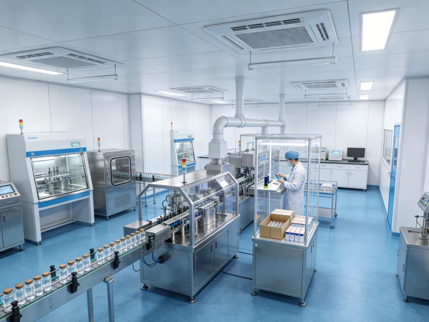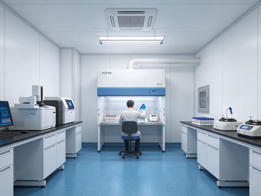 CGT醫藥研發生產車間內部采用藍色地面與白色墻壁的簡約統一風格,嚴格契合GMP最高等級潔凈規范,精準匹配細胞治療、基因工程等研發生產的無菌嚴苛需求。藍色地面選用醫用級高活性抗菌環氧自流平材質,經基層拋丸強化、抗菌底漆涂刷、環氧砂漿找平、抗菌罩面固化四道核心工序,表面平整無縫隙,具備強效殺菌特性,可耐受高頻次過氧化氫熏蒸、酒精擦拭等清潔消毒作業,杜絕微生物滋生與交叉污染。