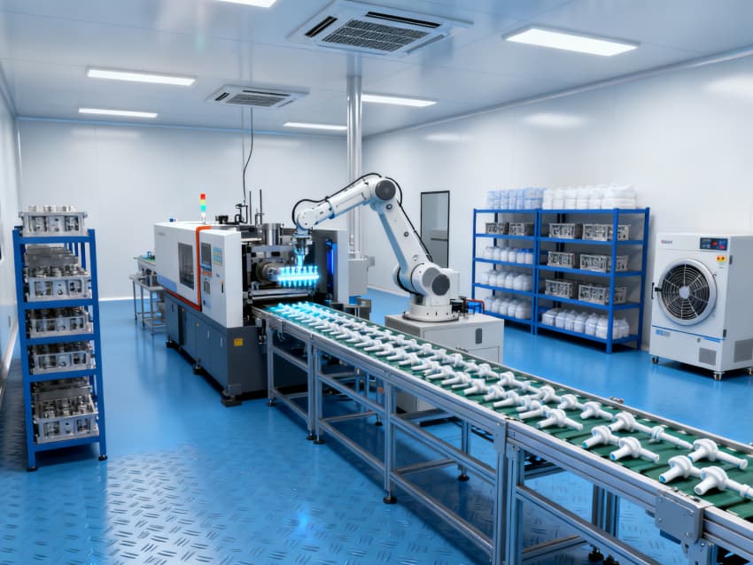 凈化配套設計全面:藍色地面具備抗菌、易消殺特性,配合地面導坡設計加速清潔排水,減少污漬殘留;白色墻面采用無縫抗菌涂層,消除清潔死角,降低微生物附著風險;全車間劃分獨立凈化分區,通過壓差控制預留設計隔絕不同潔凈等級區域,人流、物流通道分離避免交叉污染,全方位保障無菌生產環境穩定達標。
