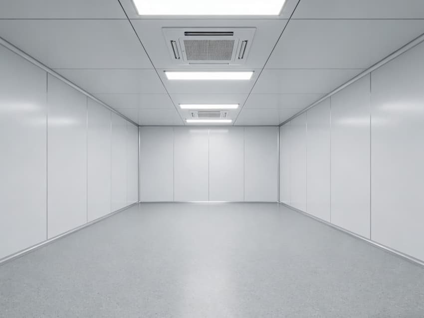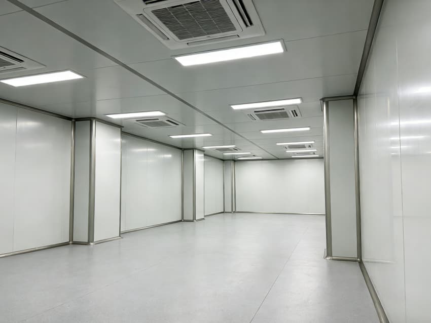 本次呈現(xiàn)的電子精密器件工廠車間以“高精度施工、高潔凈適配”為核心,融合多項(xiàng)專業(yè)施工工藝,車間內(nèi)部施工工藝凸顯精密特性:地面采用淺灰色環(huán)氧防靜電自流平工藝,經(jīng)基層拋丸處理、界面劑涂刷、環(huán)氧砂漿找平、自流平罩面四道核心工序,表面平整度誤差≤0.8mm/m,防靜電性能達(dá)10?-10?Ω;墻面采用白色潔凈抗菌涂層施工,推行無縫拼接技術(shù),陰陽(yáng)角采用R50圓弧倒角工藝,杜絕積塵死角,涂層硬度達(dá)2H以上,耐受頻繁清潔。
