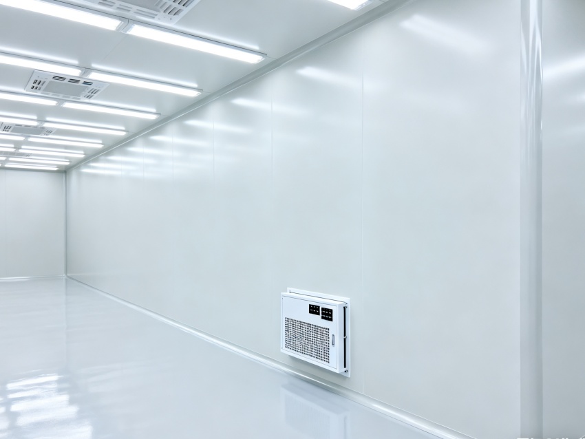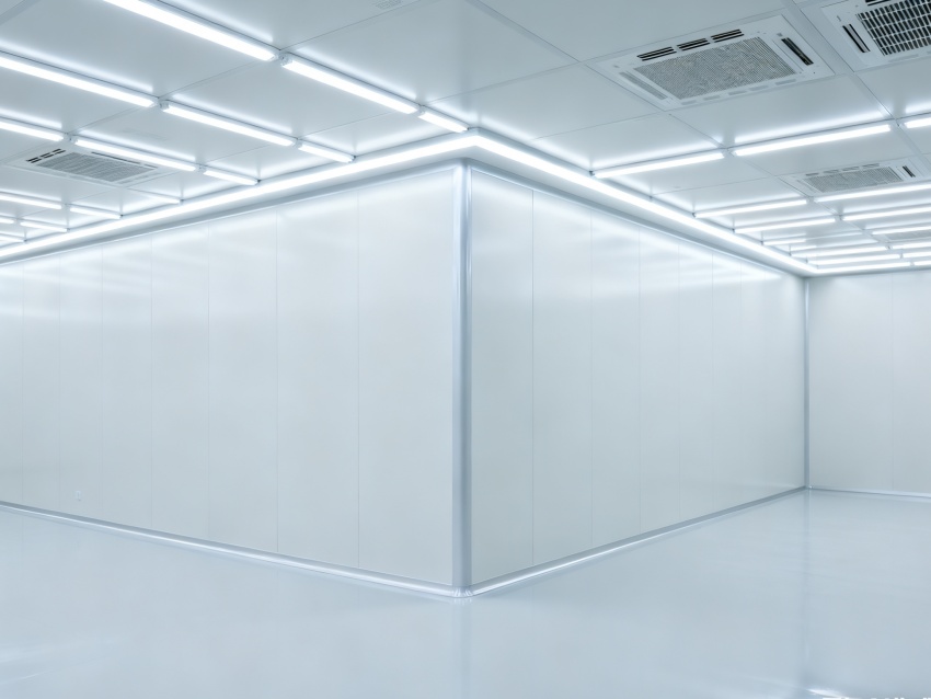 車間潔凈度嚴格遵循萬級標準(ISO8級),每立方米空氣中≥0.5μm的微粒數不超過352000個,通過初、中、高效三級空氣過濾系統實現空氣循環凈化,配合地面環氧樹脂無縫涂層、墻面不銹鋼潔凈板及圓弧角設計,減少灰塵積聚與死角。車間內溫濕度精準控制在23±2℃、45±5%RH,壓力梯度維持正壓狀態,有效阻隔外部污染物侵入,為芯片生產提供穩定、潔凈的環境,保障芯片良率與性能。
