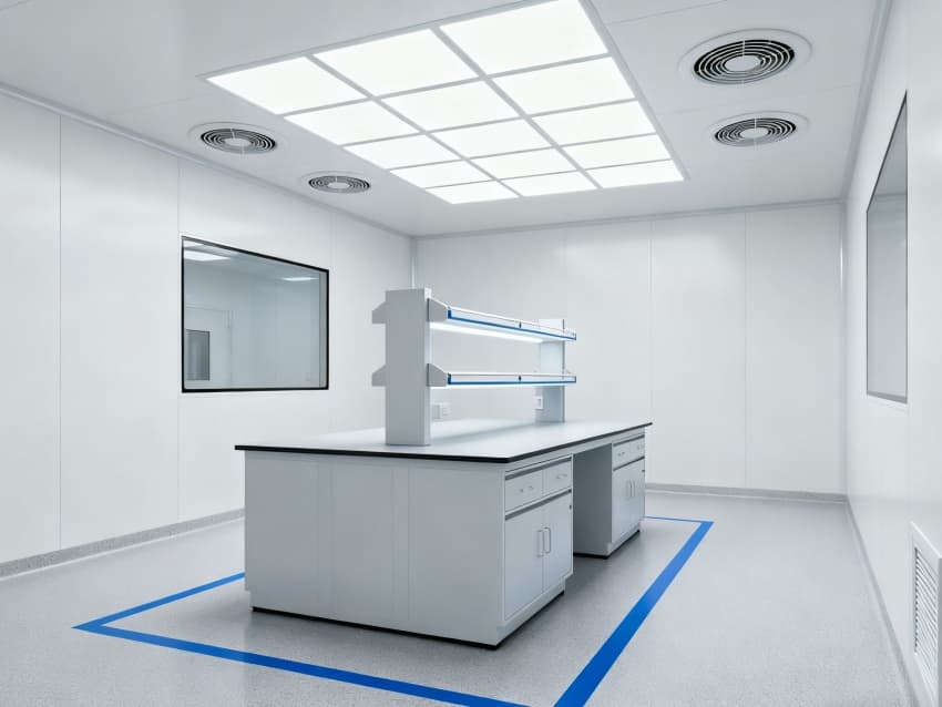 凈化工程以嚴苛標準構筑潔凈空間,核心區遵循萬級潔凈度(ISO8級),輔助區達十萬級(ISO9級),將每立方米空氣中≥0.5μm微粒精準控制在352,000個以內。三級空氣過濾系統(初效-中效-高效)與垂直層流送風設計相輔相成,如精密時鐘般驅動空氣每小時完成20-25次循環更新。室內空間采用耐腐蝕潔凈彩鋼板塑造光潔墻面,PVC無菌卷材鋪設無縫地面,每一處接縫均嚴密封合,構筑起防塵防菌的堅固屏障。恒溫系統將溫度恒定在22±2℃,濕度精準維持于50±5%RH,部分區域更以微負壓設計形成氣流護城河,有效阻斷交叉污染,全方位契合醫藥研發實驗室GMP規范的嚴苛要求。?
