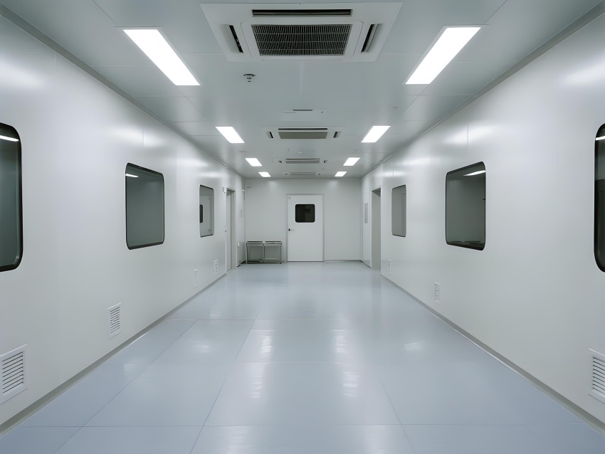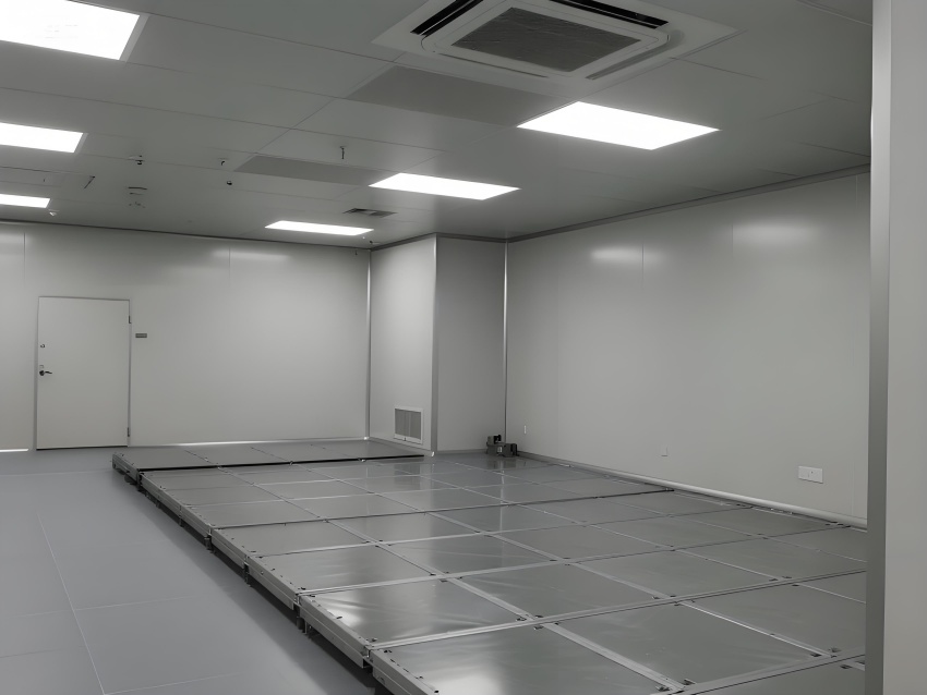 地面為導靜電高架地板系統(tǒng),確保微振動控制與管線隱蔽;墻面采用航空級鋁復合板,陽極氧化處理防靜電;頂面集成ULPA超高效過濾模塊,配合負壓梯度控制氣流。