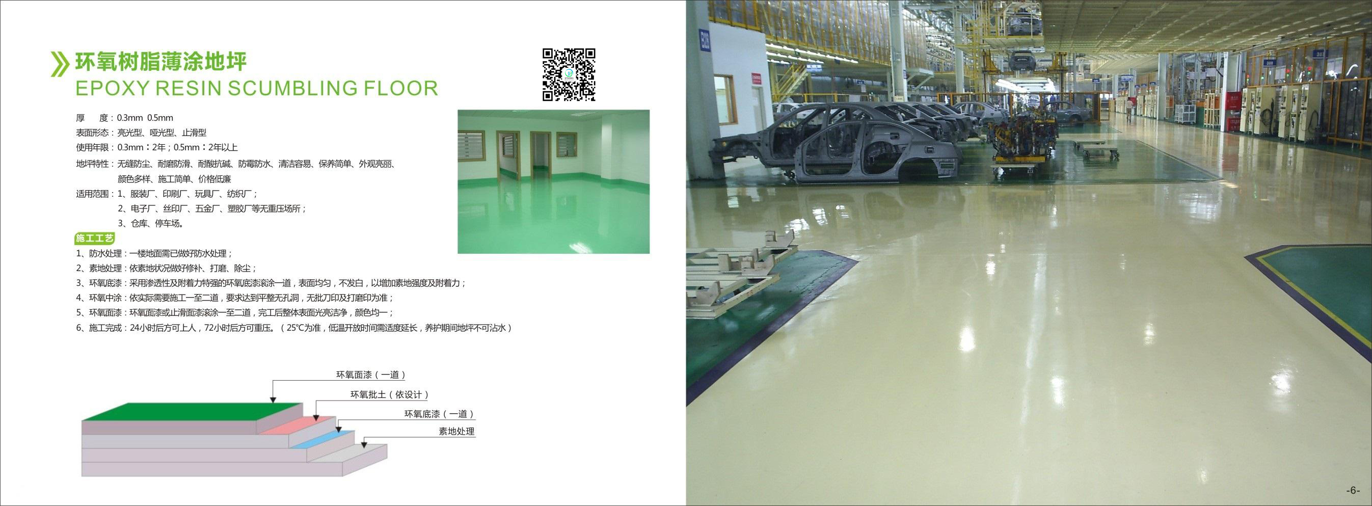 環(huán)氧樹脂薄涂地板漆針對一般輕工業(yè)作業(yè)場所用,適用于一般水泥砂漿地面及洗石地面,具有防塵美觀耐磨等特性。可根據(jù)客戶要求及實際生產(chǎn)需要對地坪厚度進(jìn)行施工。 性能特點: 附著力強(qiáng),無縫防塵,耐磨,平坦性及遮蓋力佳; 耐微酸,微堿,防毒性佳,安全無毒。 適用場所: 原舊環(huán)氧地坪修補(bǔ); 醫(yī)院,藥廠,電子,食品廠; 實驗室,地下停車場或輕放場所等行業(yè)。